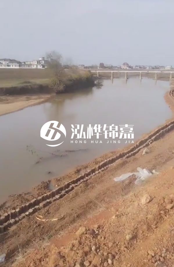 - 打入松木樁:使用打樁機(jī)將松木樁垂直打入河道底部,確保打入深度均勻一致。
