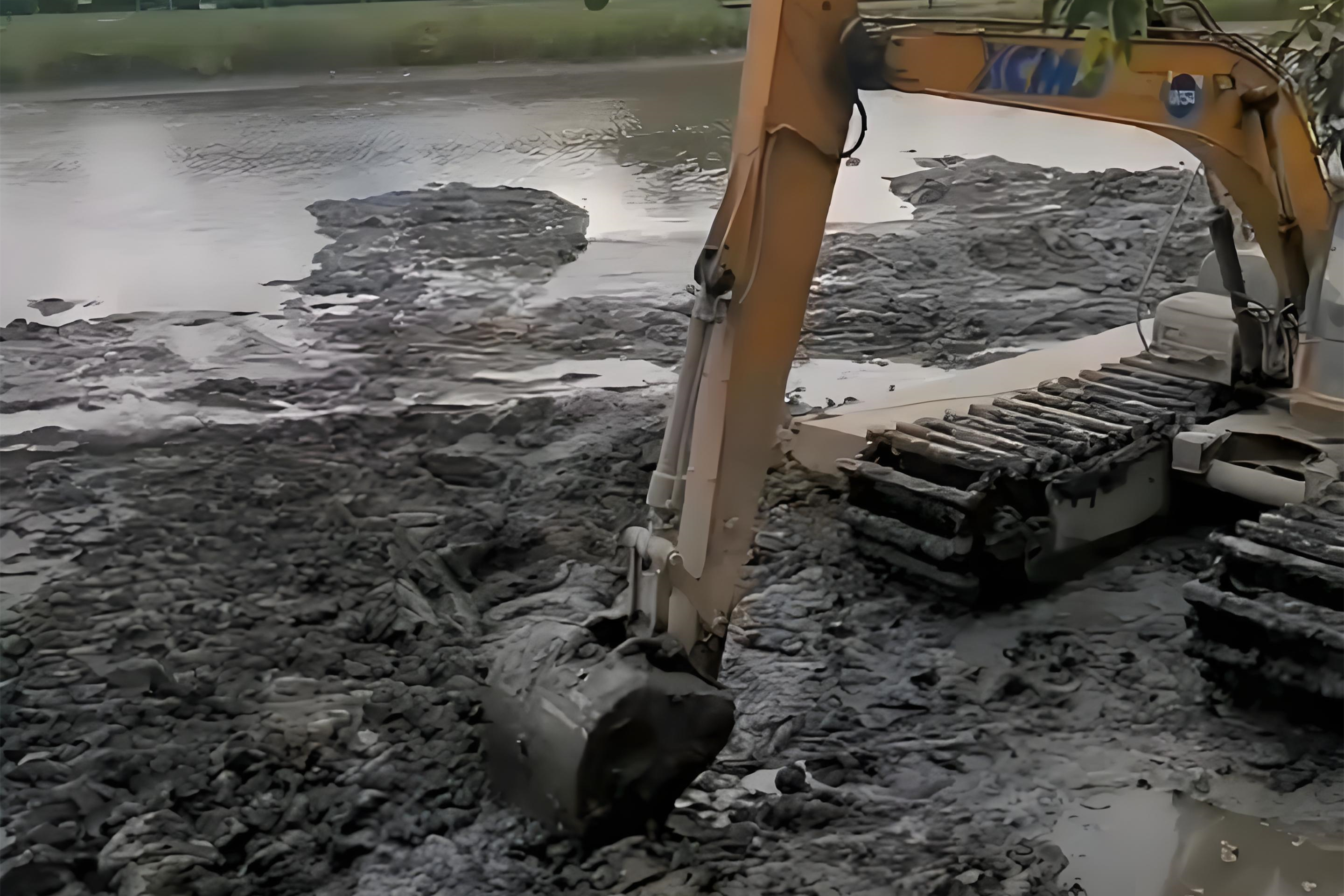- 黏性淤泥(淮河、漢江支流):必須配網(wǎng)格鏟斗,最好再帶個小型脫水機(把淤泥堆在防滲膜上,用挖機來回翻曬,含水量能降到 60%)。